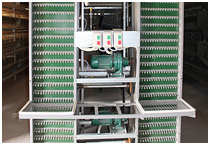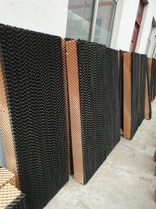 Gambar diatas adalah gambar coolingpad. Coolingpad akan mendinginkan udara masuk menggunakan kucuran air yang dirembeskan ke pad selulosa. Air hasil kucuran akan ditampung menggunakan talang, kemudian di-pool pada suatu tandon air. Air tersebut kemudian di saring kemudian di re-sirkulasi untuk mendinginkan pad selulosa kembali.