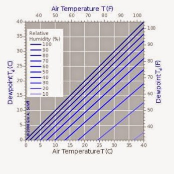 Jika ada udara dengan kelembaban 80% dengan suhu 300C maka akan terjadi proses pengembunan (dew) jika udara tersebut menyentuh permukaan/udara pada suhu 26,160C.