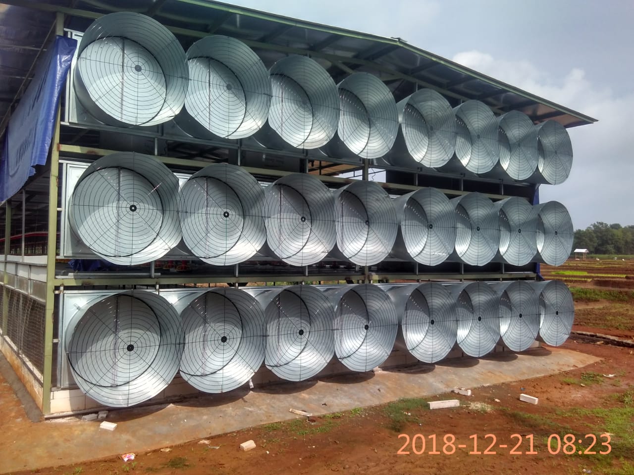 3. Pengaturan ventilasi (evakuasi udara kotor dalam kandang) dilakukan menggunakan serangkaian exhaust fan.