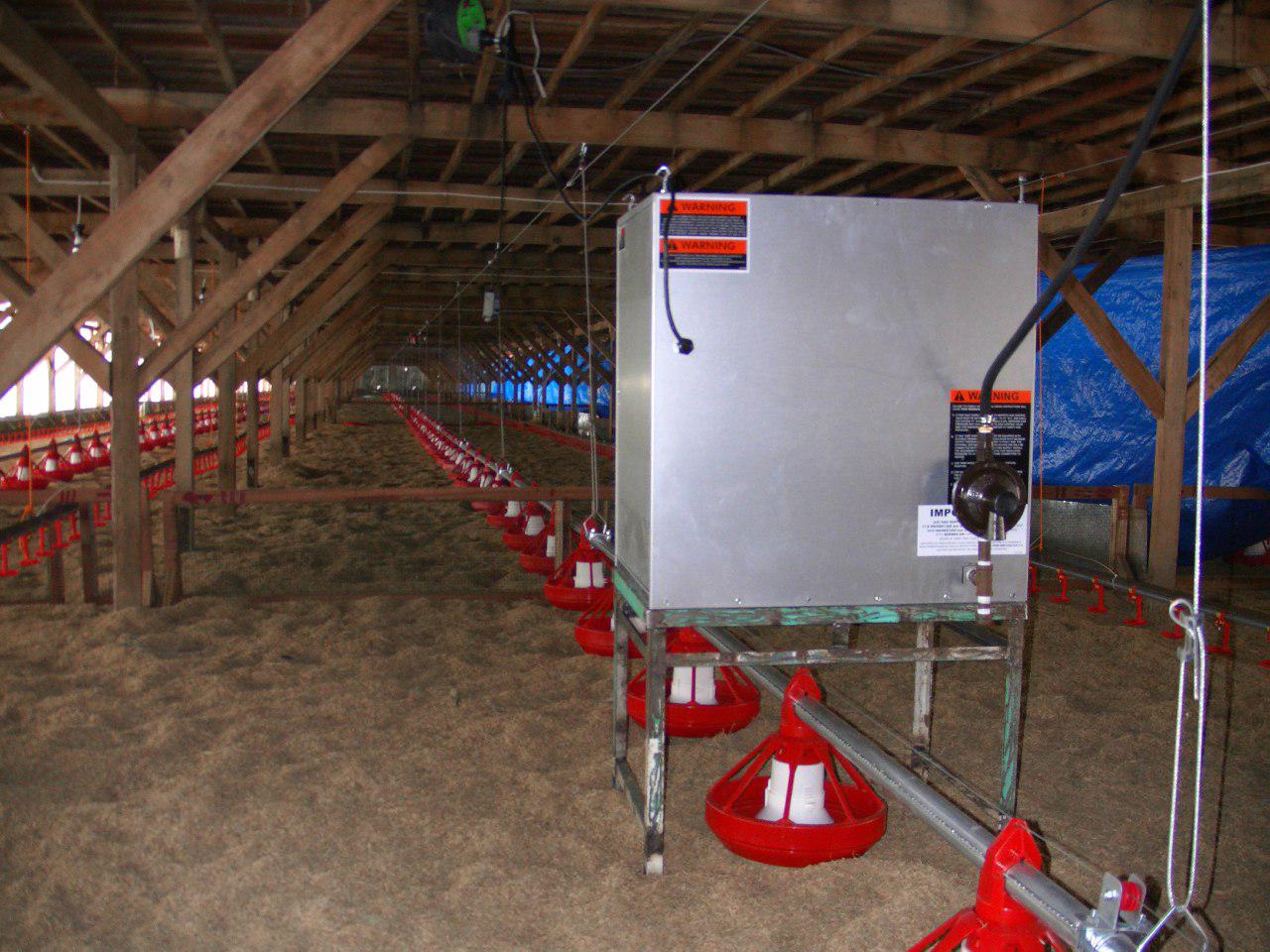 Mesin central heater ini adalah mesin untuk mengatur suhu dalam ruang closedhouse. Biasanya bekerja penuh pada saat masa brooding, yaitu masa ketika anakan ayam (DOC = day-old chick) masuk ke kandang sampai ayam berusia sekitar 15-17 hari (siap dilepaskan ke suhu ruang tanpa heater).